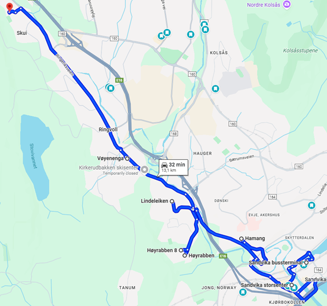 | Sandvika bussterminal | 11:45 | 14:00 | 2V | |||||