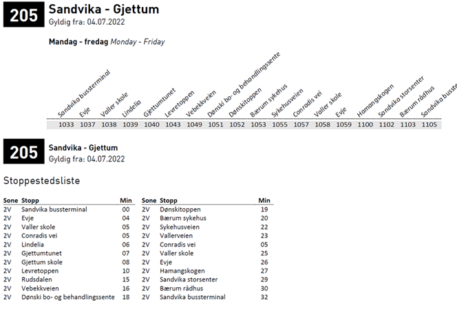 | Sandvika bussterminal | 10:33 | 13:13 | 2V | ||||