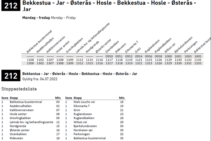 | Bekkestua bussterminal | 10:05 | 11:35 | 13:35 | 1 | |||||